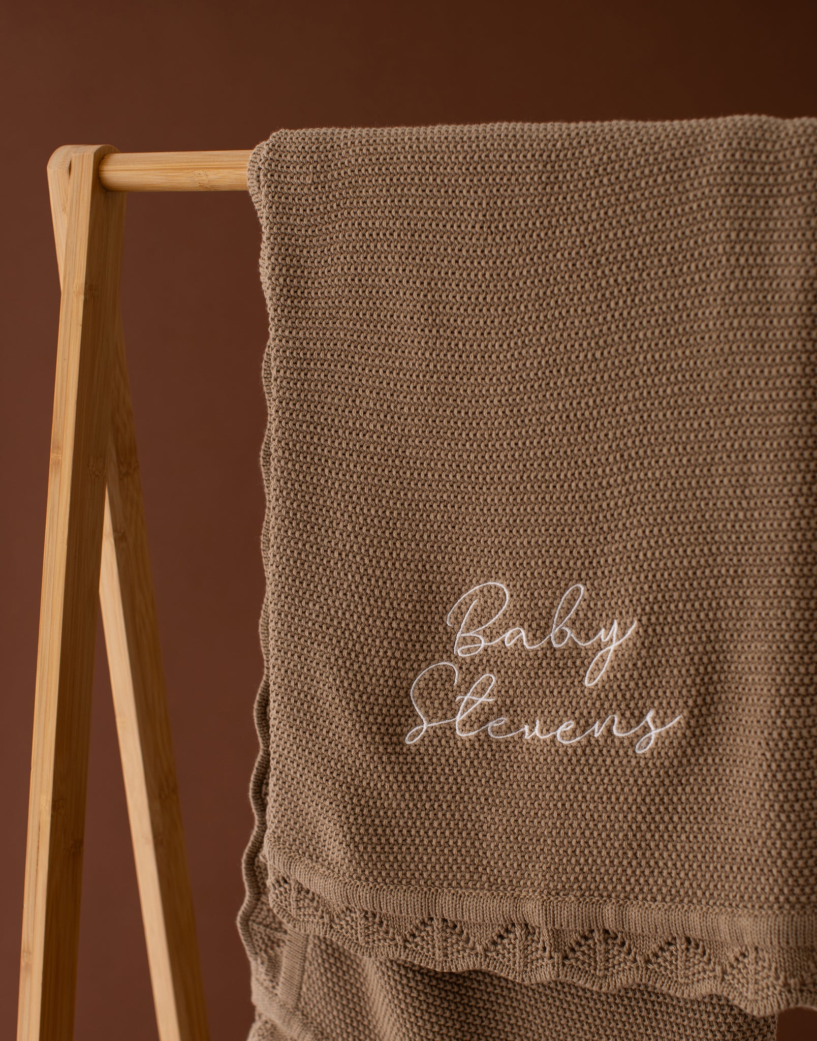 Wrap up a little one in this gorgeous knitted blanket. The soft, material guarantees to keep them warm at chilly times and the beautiful print will brighten up any nursery. Free personalisation, a perfect keepsake to gift or to purchase.